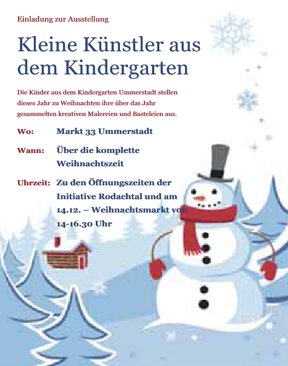 Wir freuen uns auf zahlreiche Eltern, Großeltern und interessierte Bürger die die Gelegenheit nutzen, die Werke zu bestaunen und mit den kleinen Schöpfern ins Gespräch zu kommen.