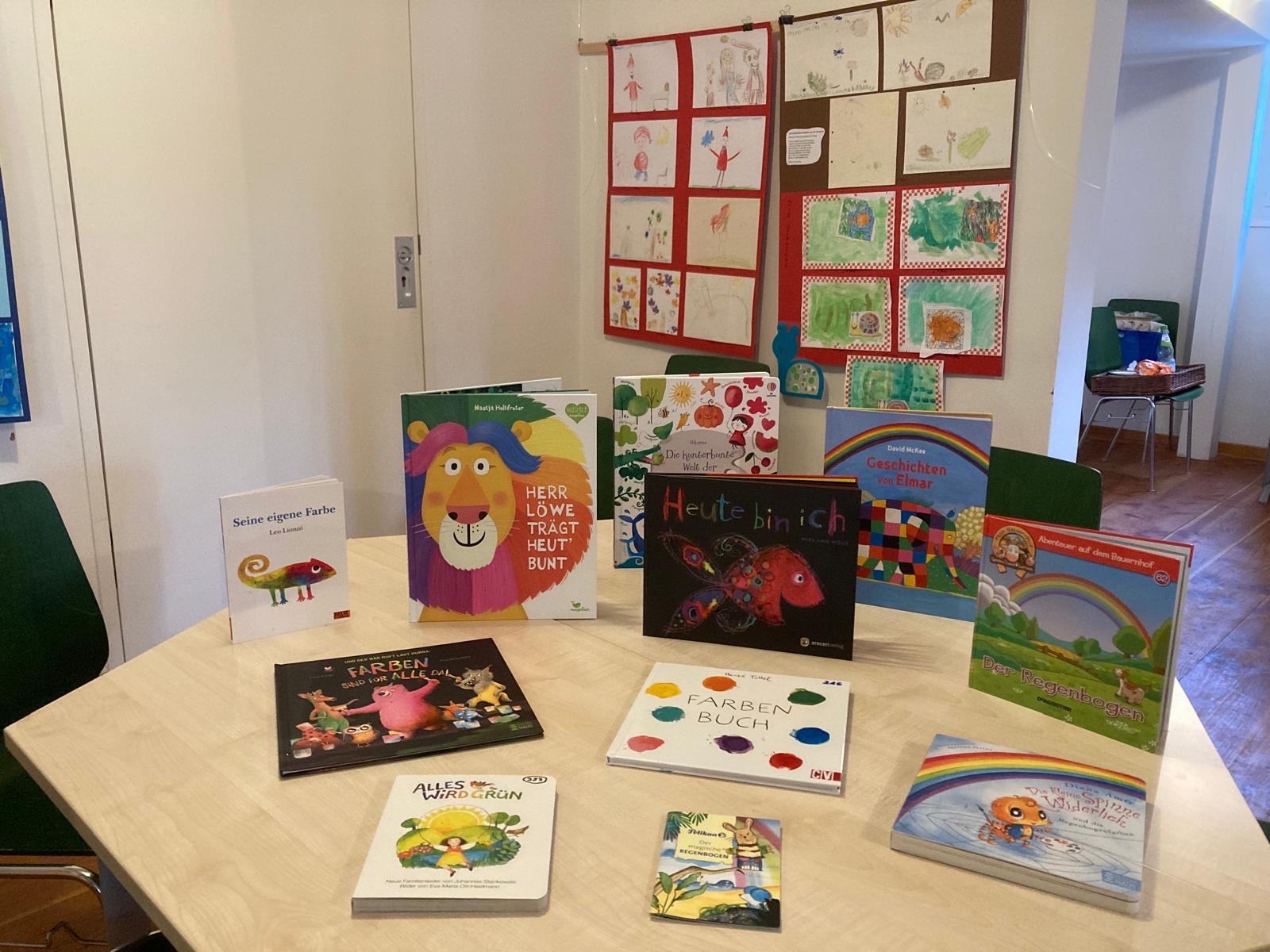 Und es gibt für jeden die Möglichkeit selbst kreativ zu werden oder Bücher zum Thema Farben anzuschauen.